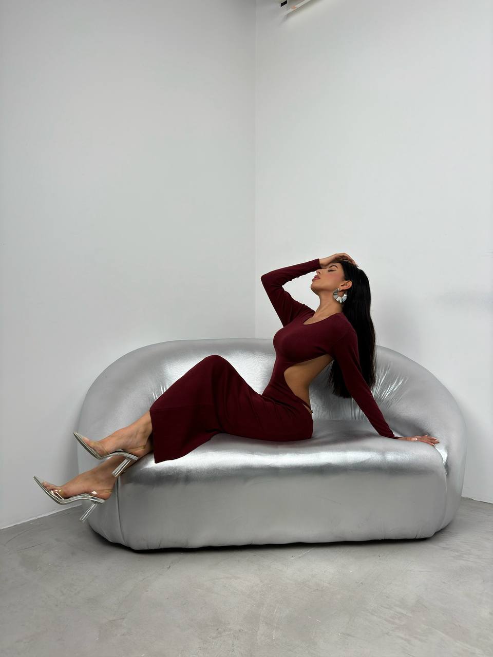 Bisiklet Yaka Sırt Dekolteli Elbise