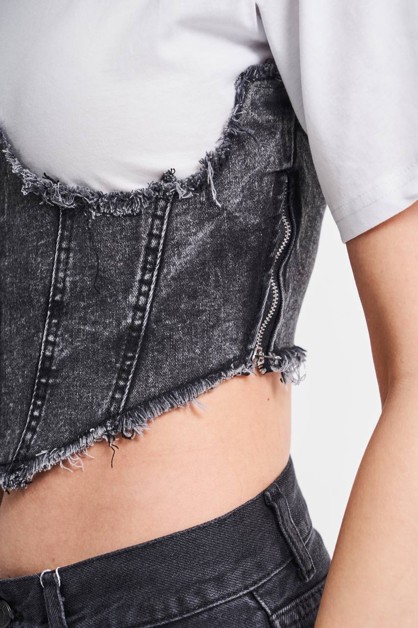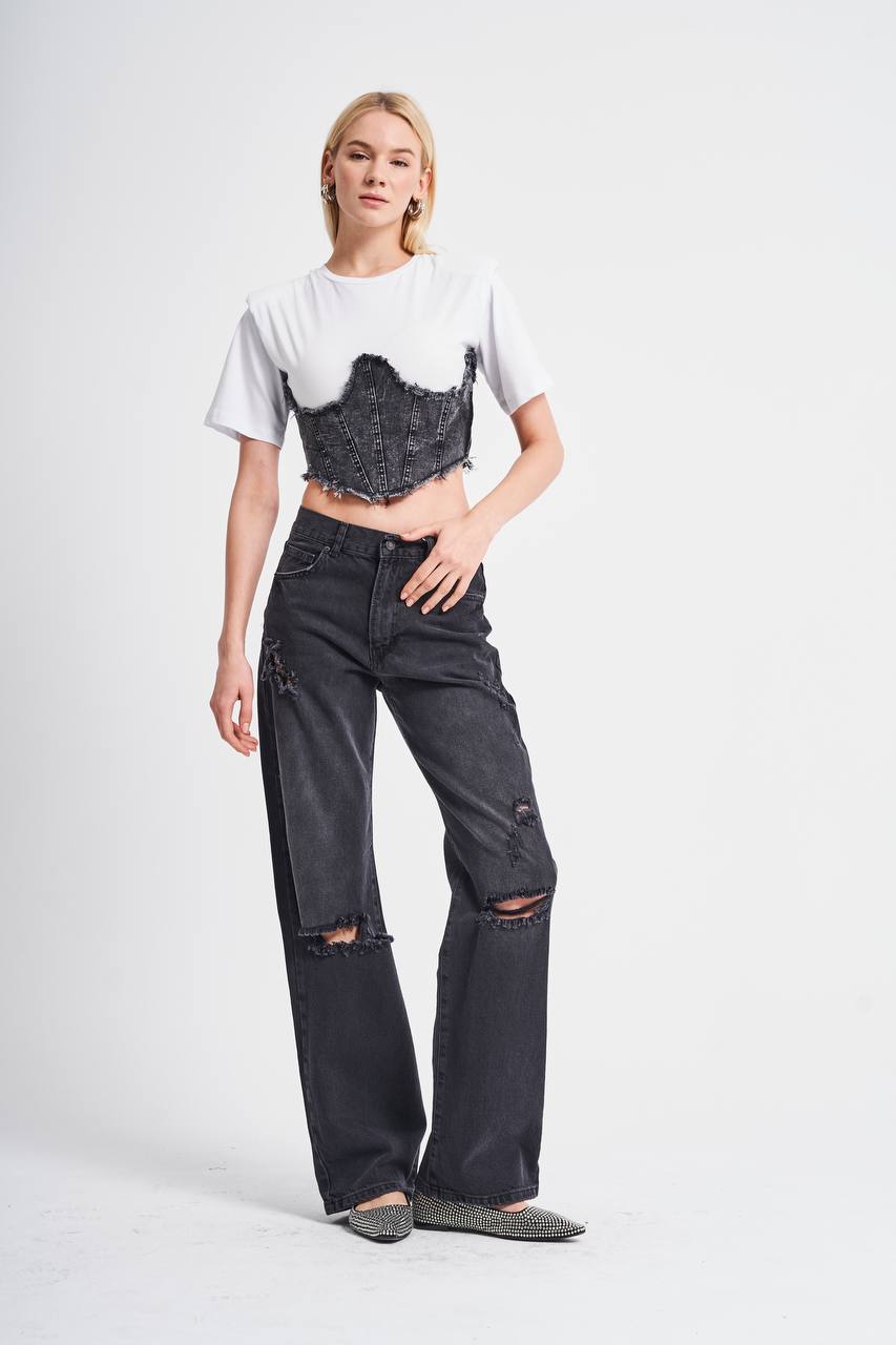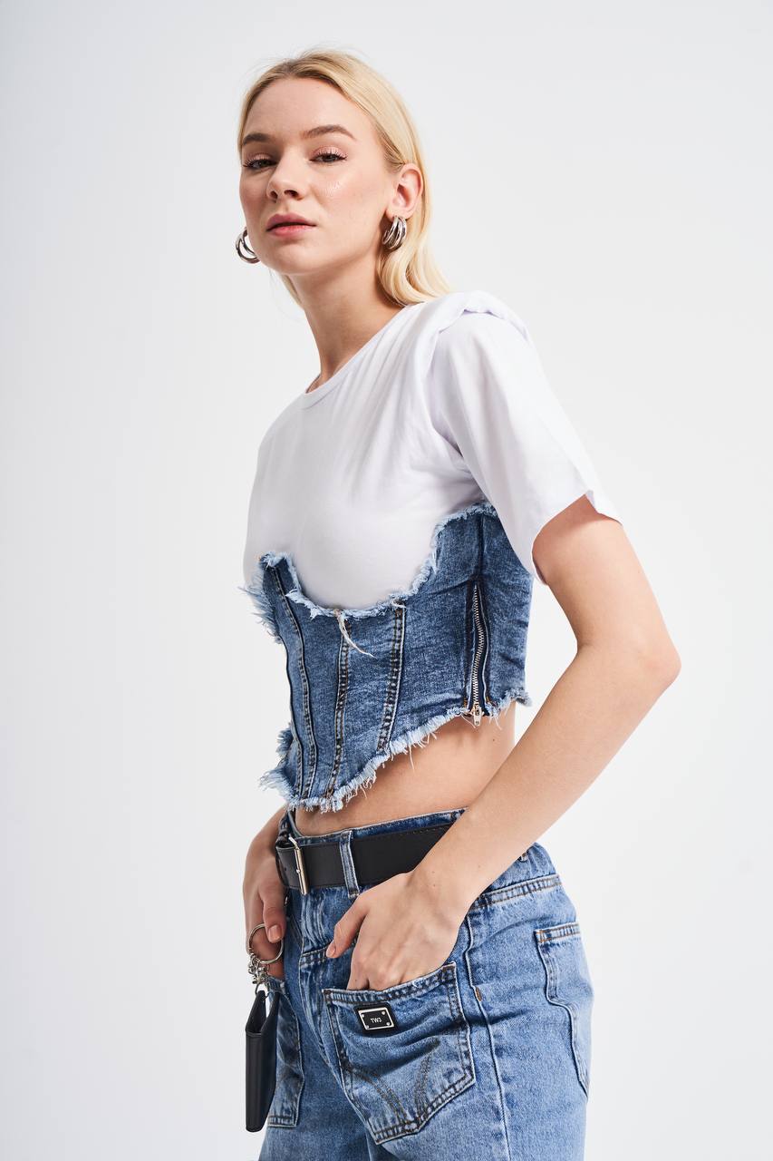 Ana SayfaÜst GiyimT-Shirt Kadın Denim Korse Detaylı T-Shirt