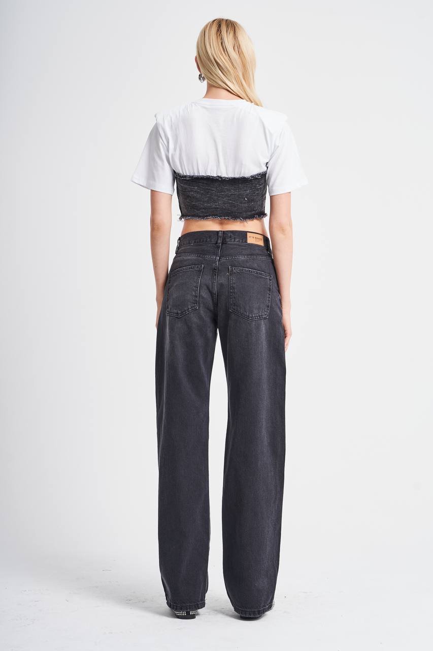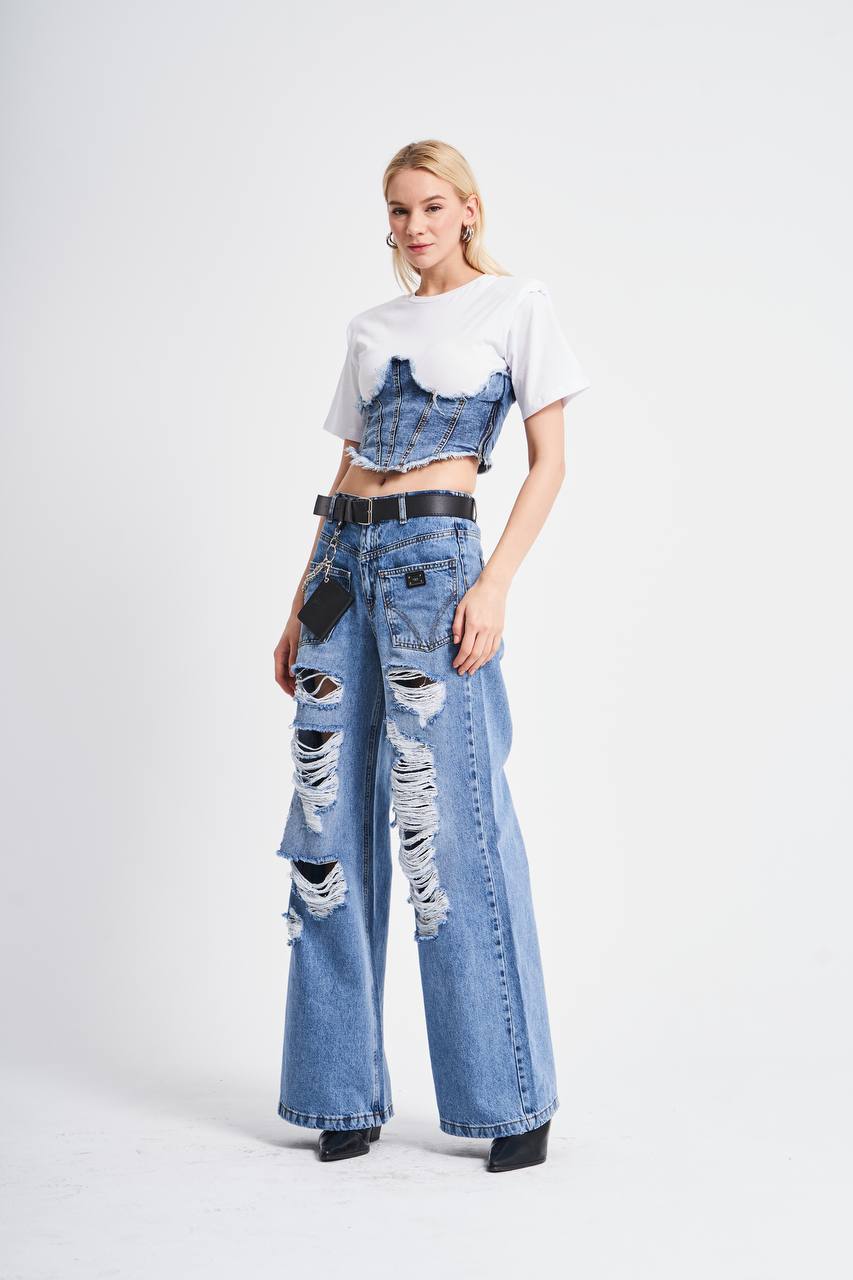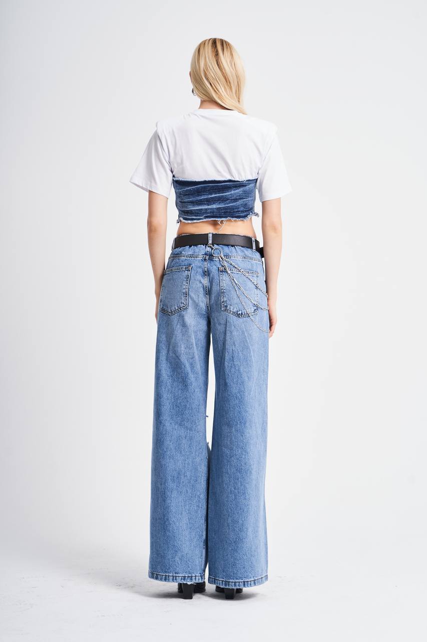 Ana SayfaÜst GiyimT-Shirt Kadın Denim Korse Detaylı T-Shirt