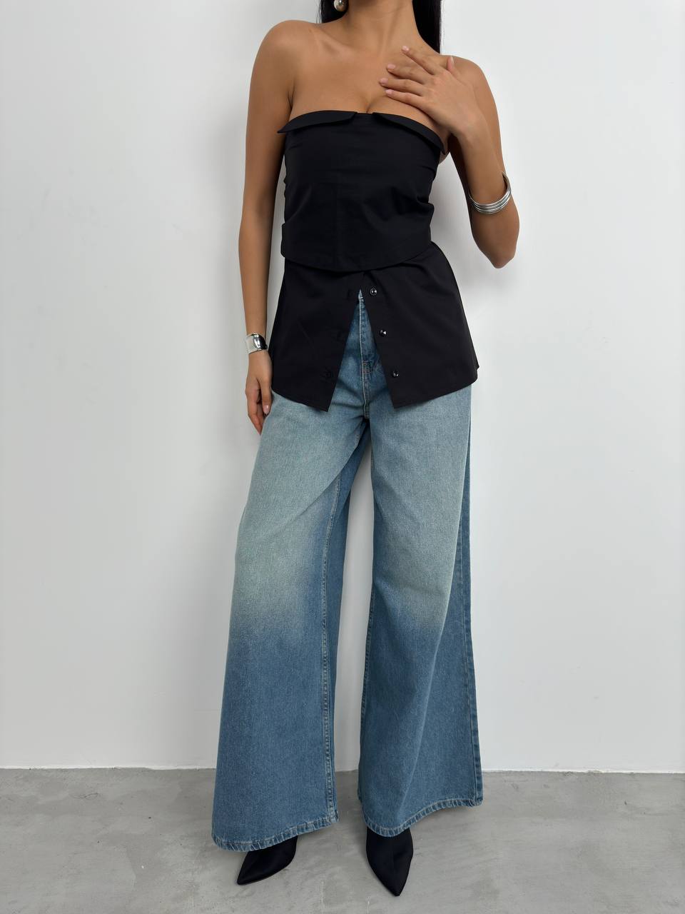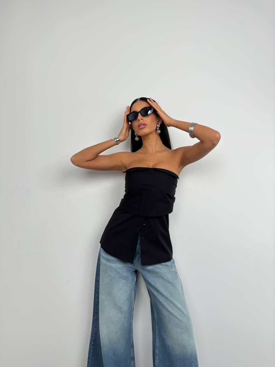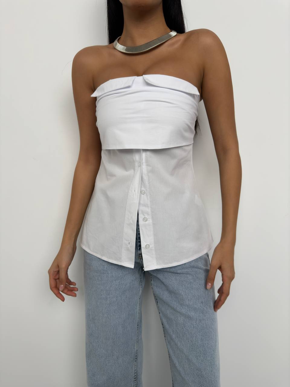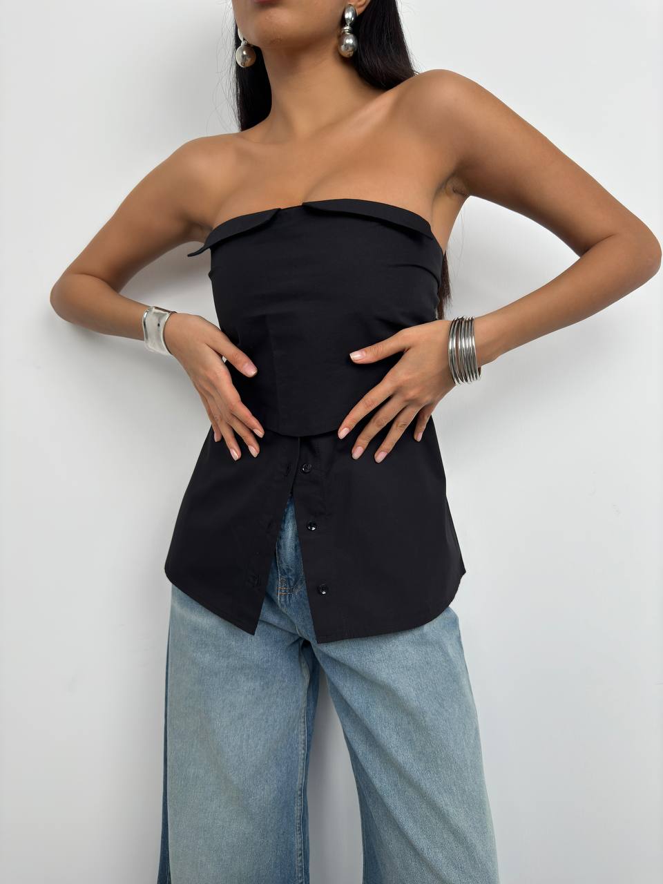 Ana SayfaÜst GiyimGömlek Kadın Düğme Detaylı Straplez Bluz