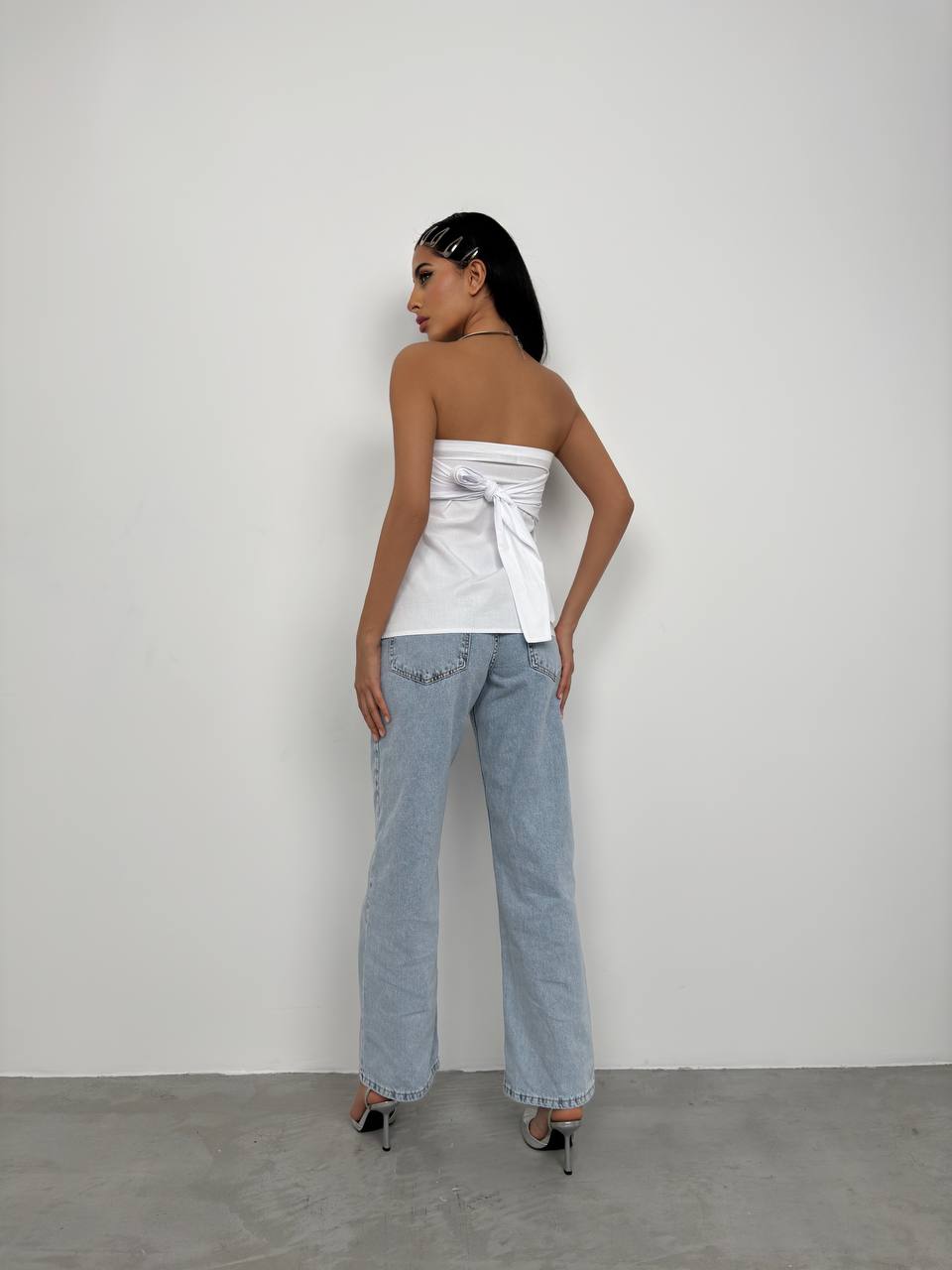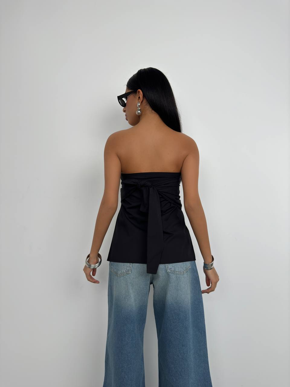 Kadın Düğüm Detaylı Bağlamalı Straplez Crop Bluz