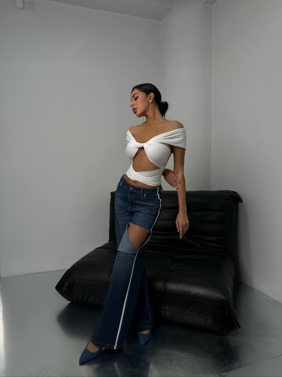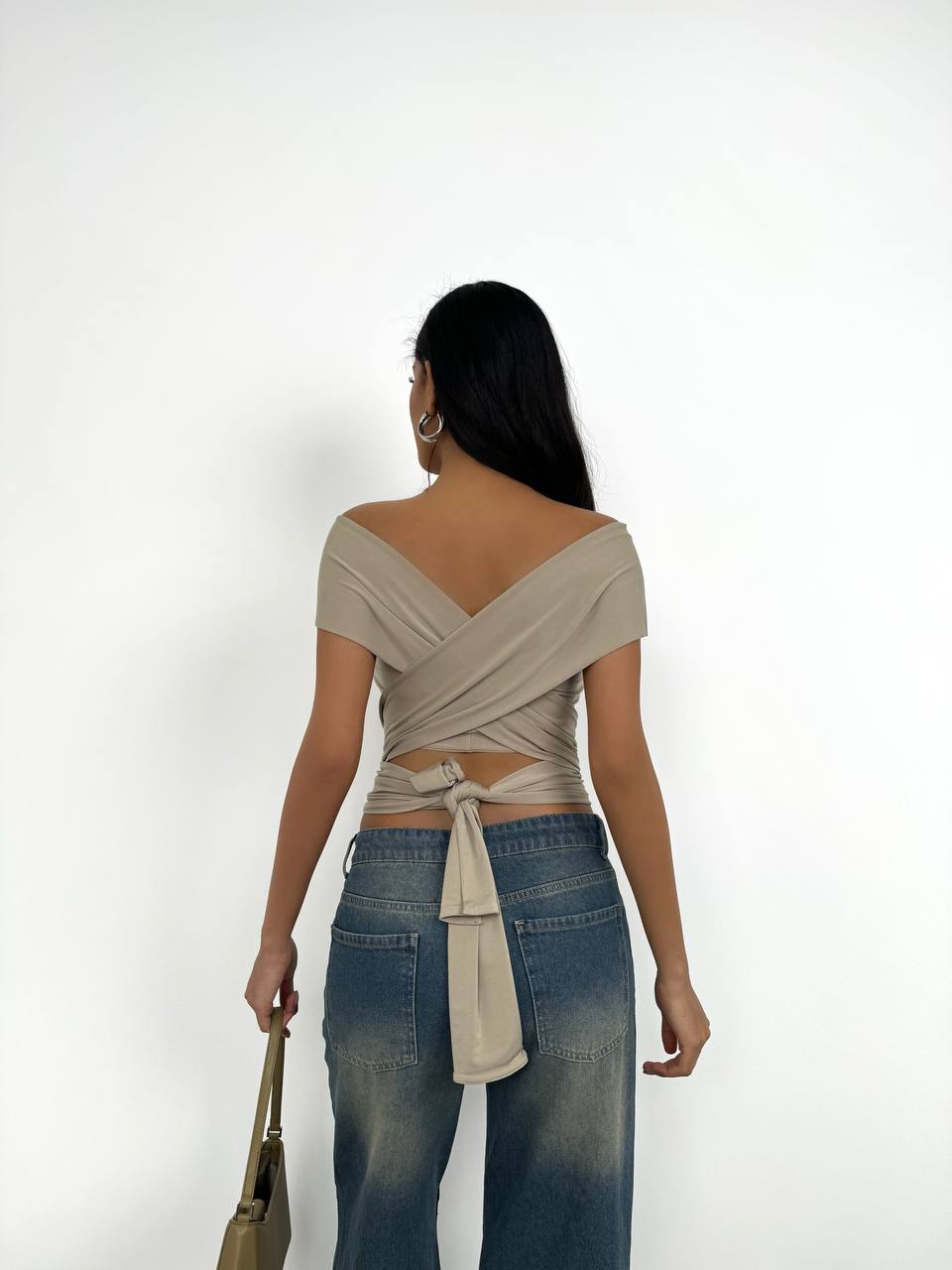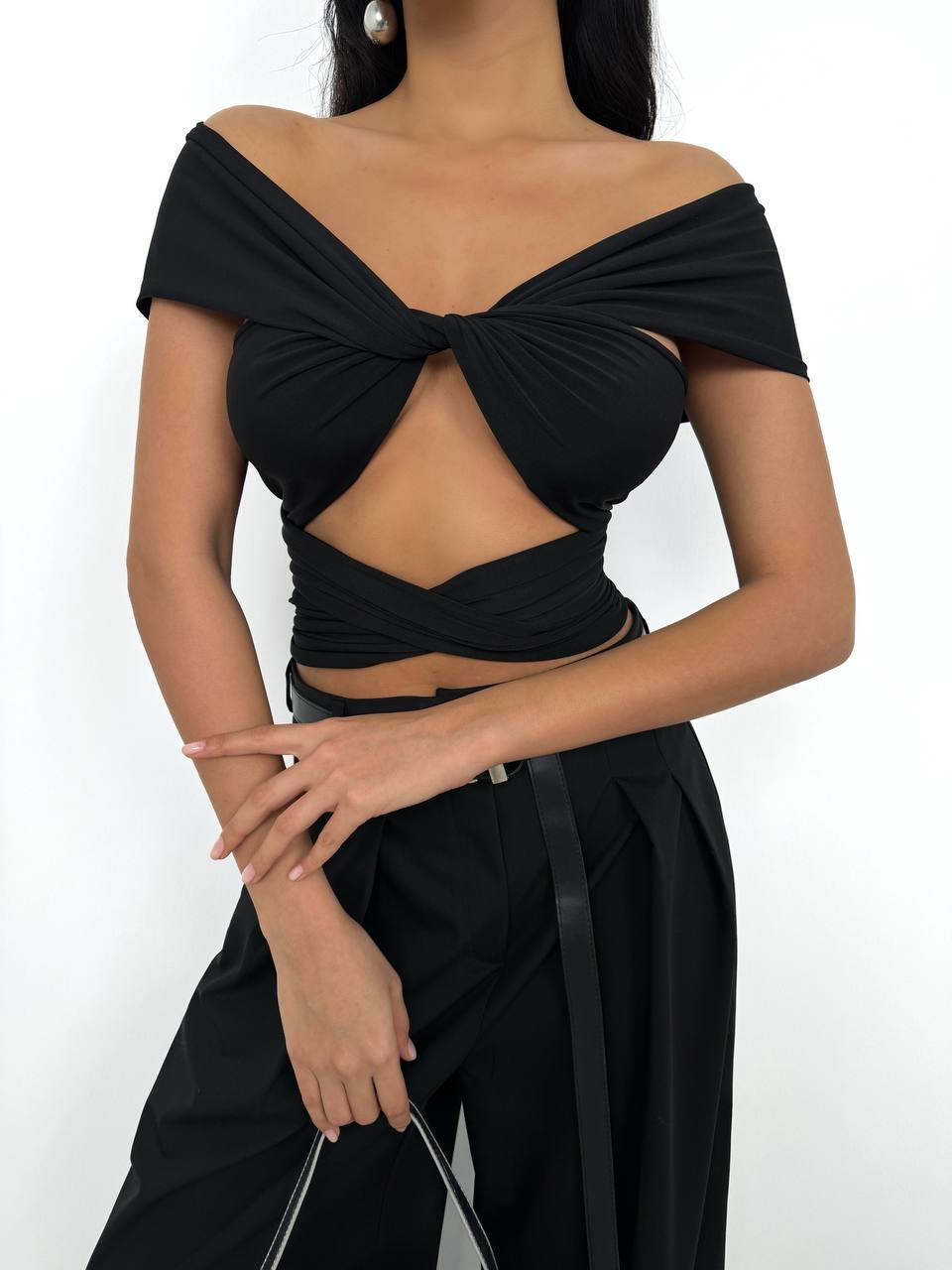 Kadın Düğüm Detaylı Bağlamalı Straplez Crop Bluz