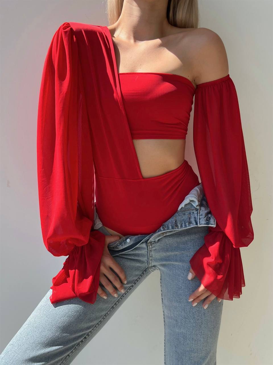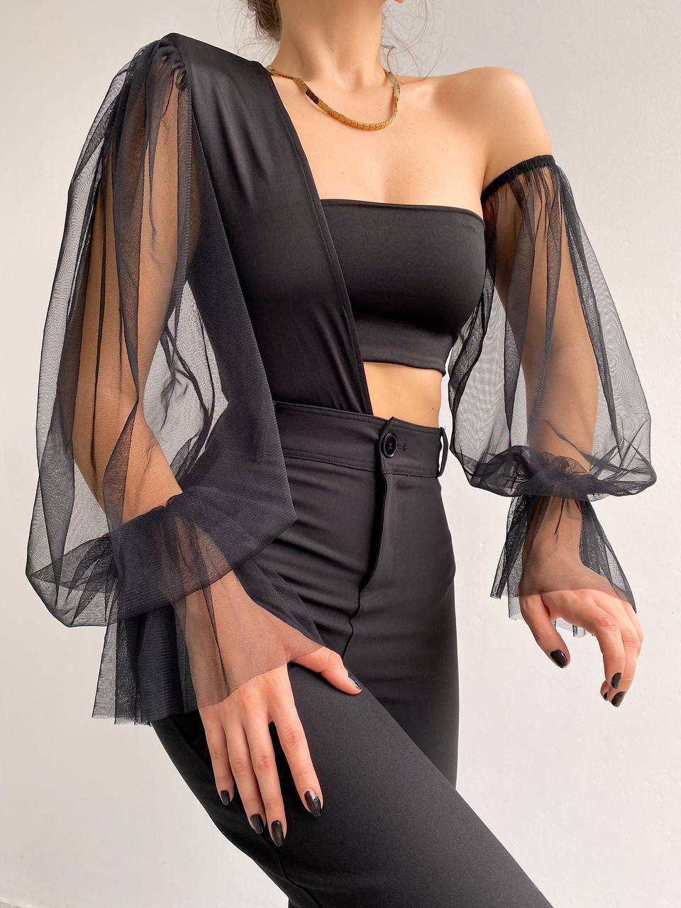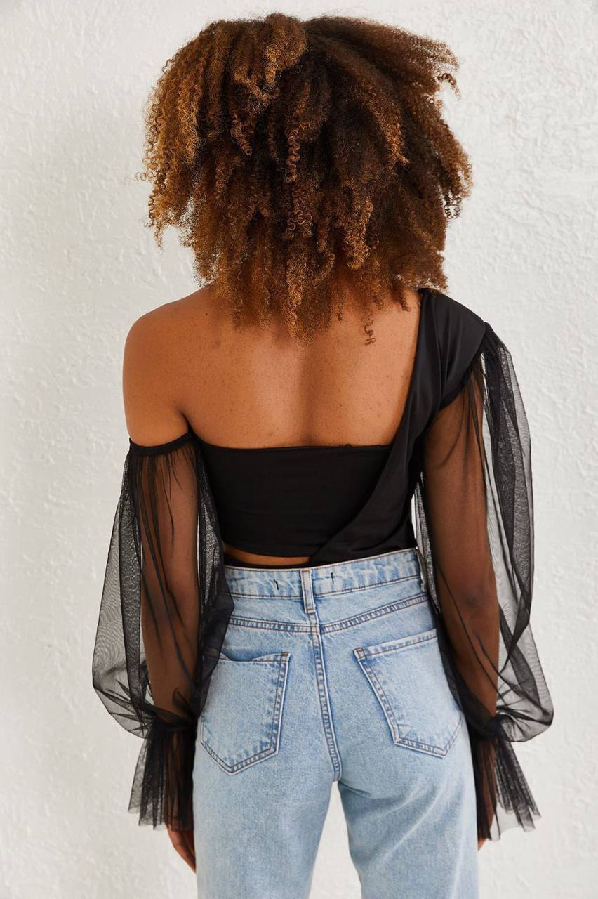 Kadın Kolları Tül Büstiyer Detaylı Bodysuit