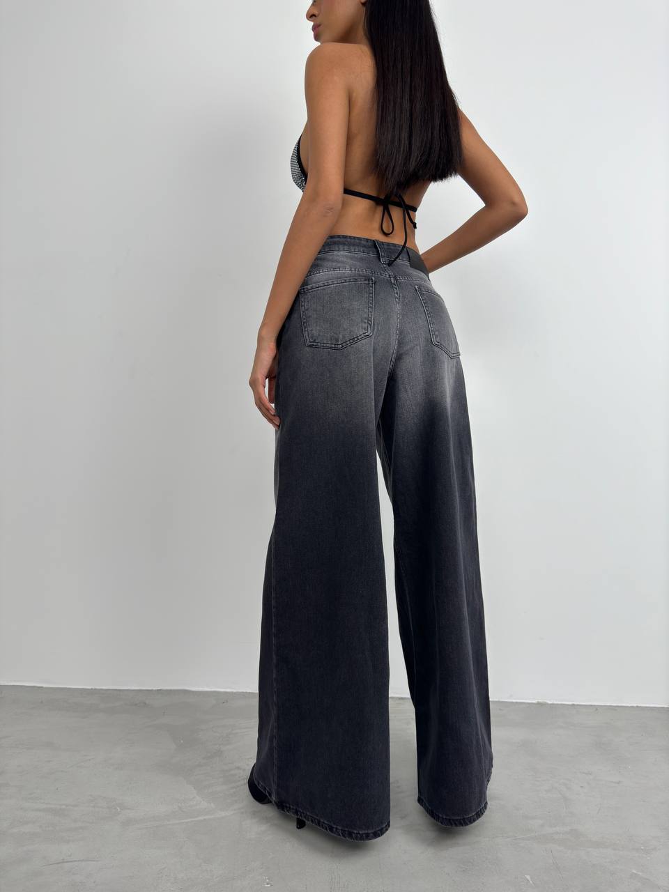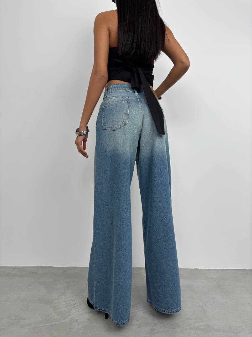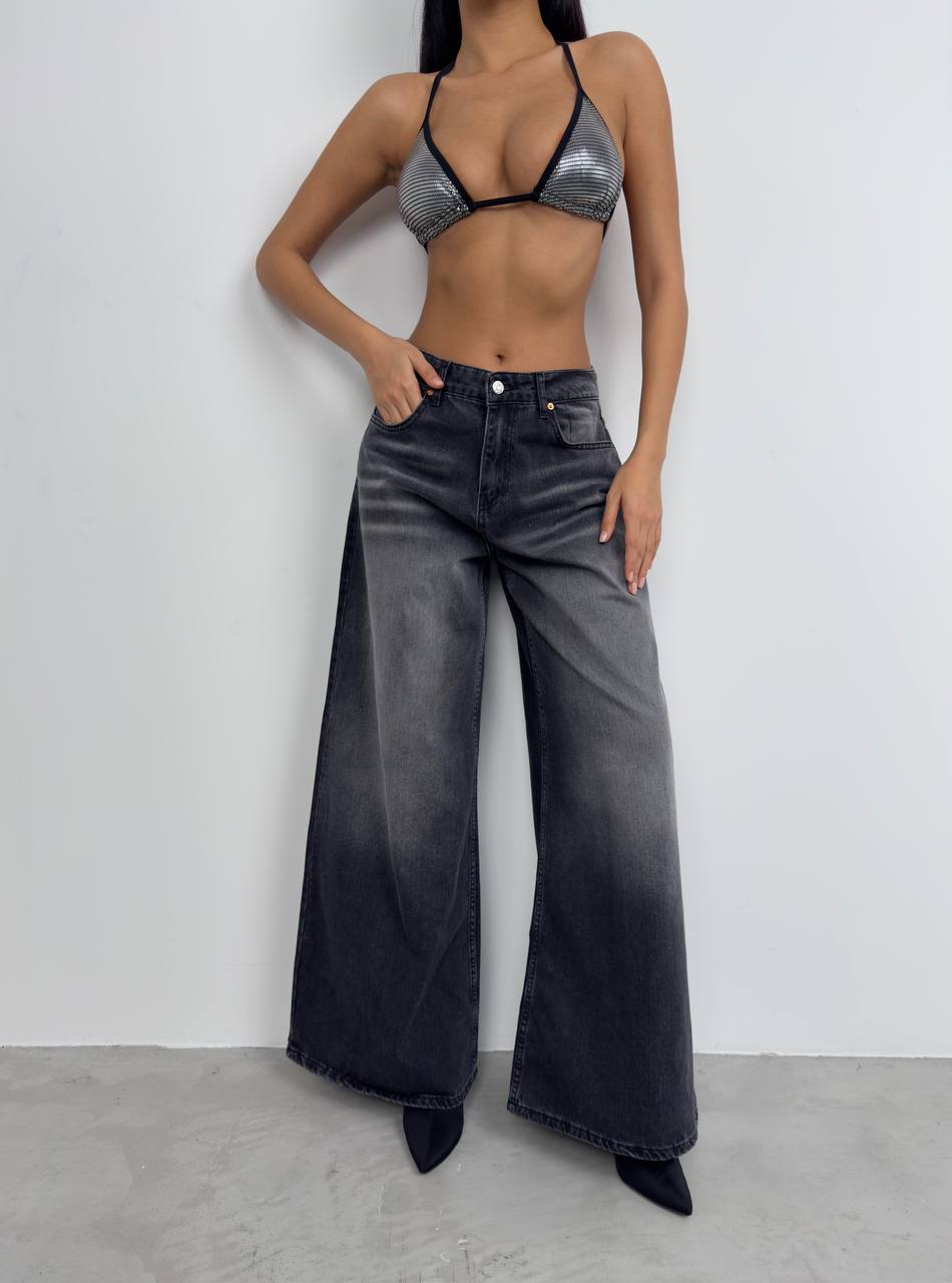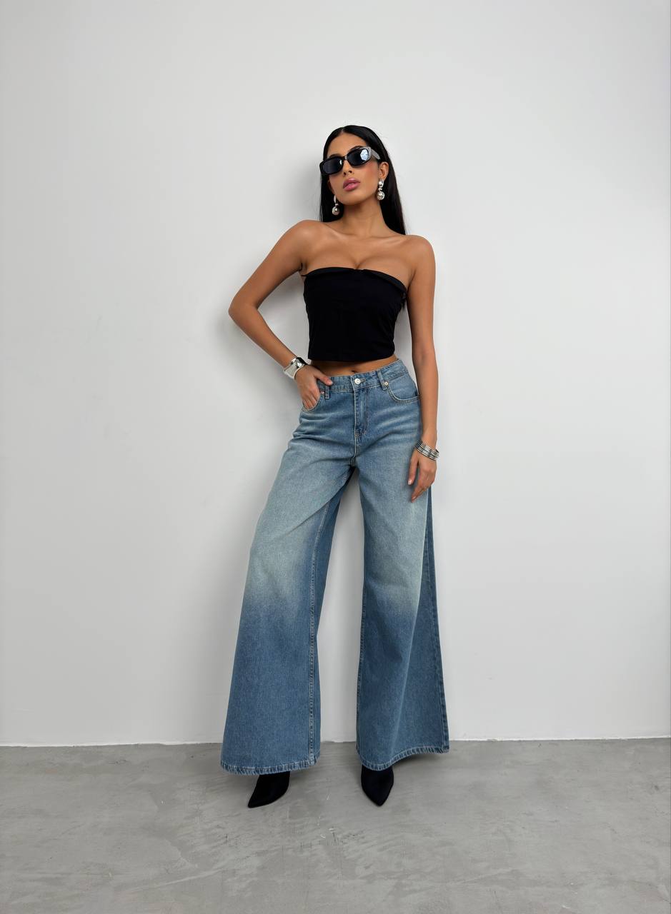 Kadın Yıkamalı Wide Leg Jean Pantolon
